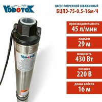Купить Насос погружной скважинный «Vodotok» БЦПЭ-75-0.5-16м-Ч, 430Вт, для чистой воды с доставкой по всей России.
