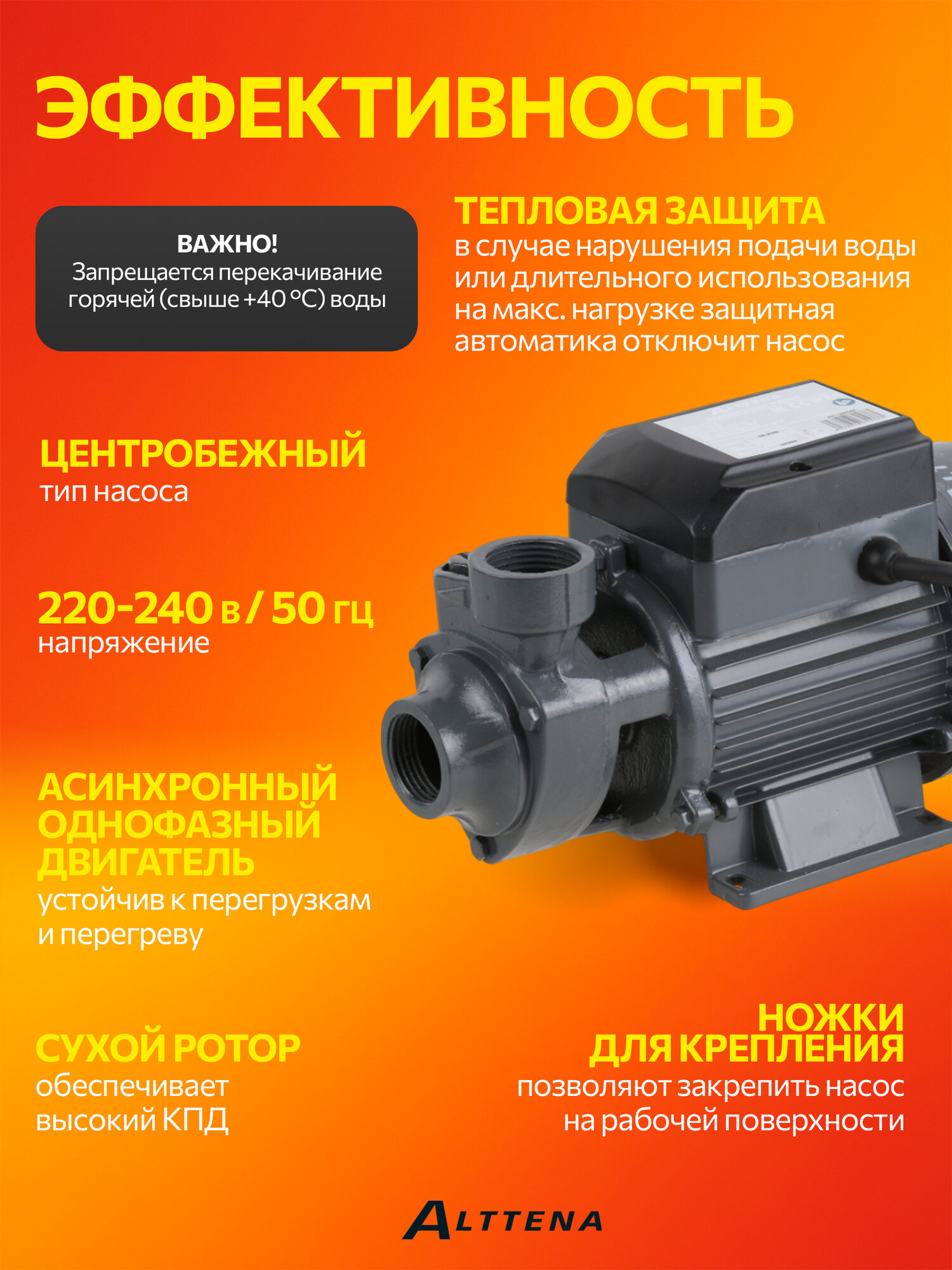 Насос электрический ALTTENA PW500 предназначен исключительно для перекачки чистой пресной воды без абразивных частиц, волокон, масел, химических растворителей или солей.