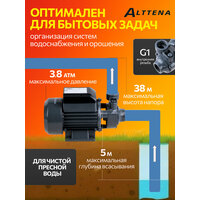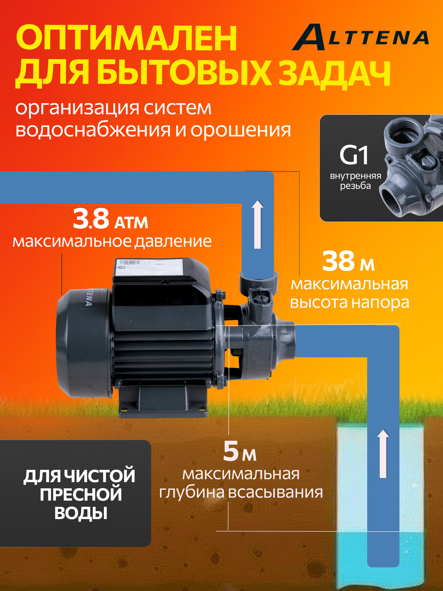 ALTTENA PW500 — это электрический водяной насос поверхностного типа, разработанный для эффективной перекачки пресной воды из колодцев, скважин, резервуаров и открытых водоёмов.