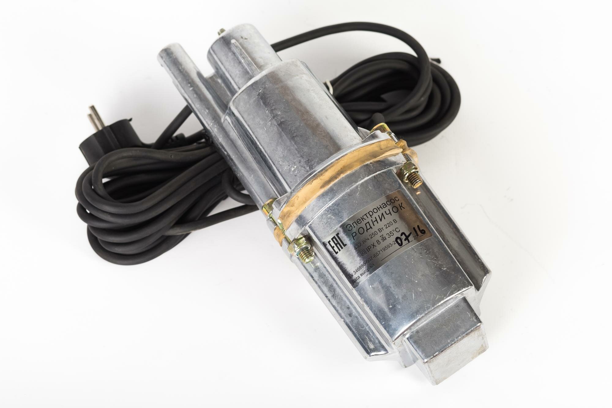 Насос Родничок поставляется в комплекте с электронасосом, веревкой подвесной, хомутом, рем. комплектом с резиновой прокладкой и руководством по эксплуатации. Номинальная мощность насоса составляет 250 Вт, длина сетевого шнура – 10 метров, максимальная температура воды – 35°C, пропускная способность – 0,5 м³/ч, глубина до зеркала воды – 3 метра, максимальный напор – 40 метров. Напряжение насоса – 220/230 В.