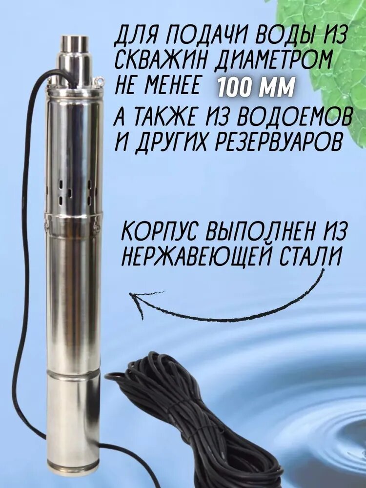 Насос скважинный BRAIT 3QGD1-40-0.37 (370Вт, макс. произв. 25л/мин, кабель 20м, макс. напор. 65м): сравнение цен, характеристики, фото, актуальное наличие и цены.