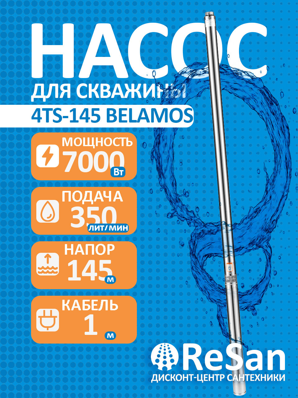 ℹ Скважинный погружной насос Belamos 4TS-145/20 разработан для высокоэффективной подачи чистой воды с большой глубины в жилищные объекты и для орошения сада. Устанавливается прямо в пробуренные скважины и применяется в автоматических системах водоснабжения дач, частных домов, коттеджей и других построек, не имеющих возможности подключения к центральной системе водоснабжения. ➡ Преимущества: ✅ Скважинный насос имеет встроенный обратный клапан с пружиной из нержавеющей стали, который гарантирует надежную работу и защиту насоса от обратного потока воды. ✅ Увеличенное количество ступеней центробежного насоса, специальный материал и форма лопаток гарантируют стабильный напор в широком диапазоне расход воды. ✅ Корпус скважинного насоса выполнен из нержавеющей стали, что обеспечивает долговечность и надежность работы устройства. ✅ Рабочее колесо насоса изготовлено из полимера, что обеспечивает высокую износостойкость при перекачивании воды с содержанием песка (до 180 г/м3). ✅ Применение механического уплотнения из керамики, графита и нитрила (NBR) обеспечивает надежную герметичность работы насоса и эффективно предотвращает проникновение воды в электродвигатель. ✅ Электродвигатель с масляным охлаждением однофазного типа обладает высокой устойчивостью к скачкам напряжения благодаря тому, что его обмотка способна работать в пределах напряжения от 180 до 250 вольт. Этот двигатель обеспечивает надежную и стабильную работу насоса даже при продолжительном использовании. Наша компания официальный представитель бренда Belamos. Бренд на рынке уже более 30 лет. Качество выпускаемой продукции подтверждается сертификатами TUV и IMQ.