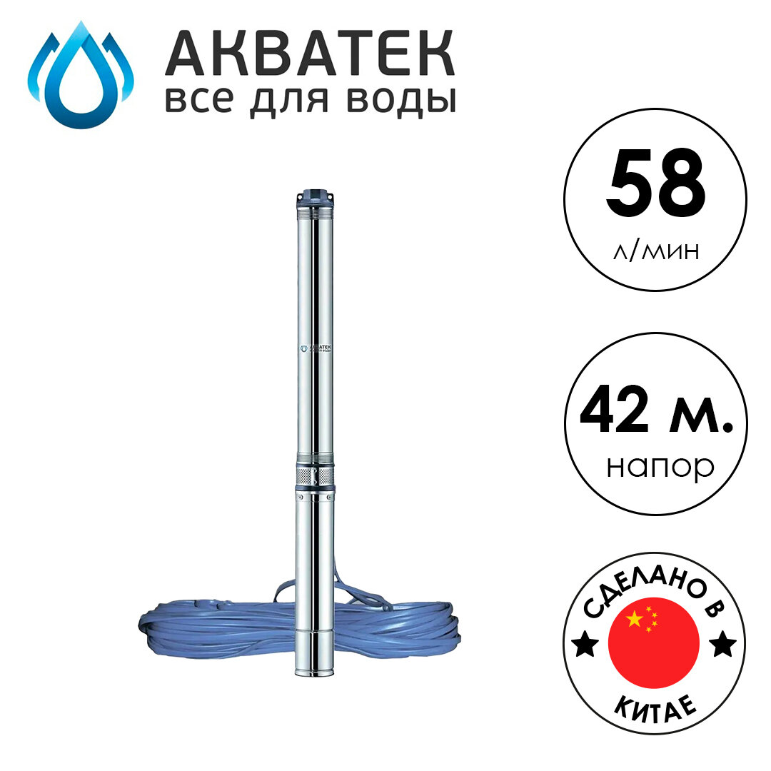 Купить Насос скважинный SP 3″ 3-40 АКВАТЕК, кабель 15м, 58 л/мин, 42 м, оголовок чугун с доставкой по всей России.