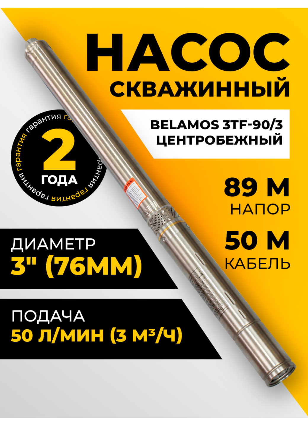 Насос скважинный центробежный Belamos 3TF-90/3, 50 л/мин, Н-89 м, Ø-3″, каб.50 м: сравнение цен, характеристики, фото, актуальное наличие и цены.