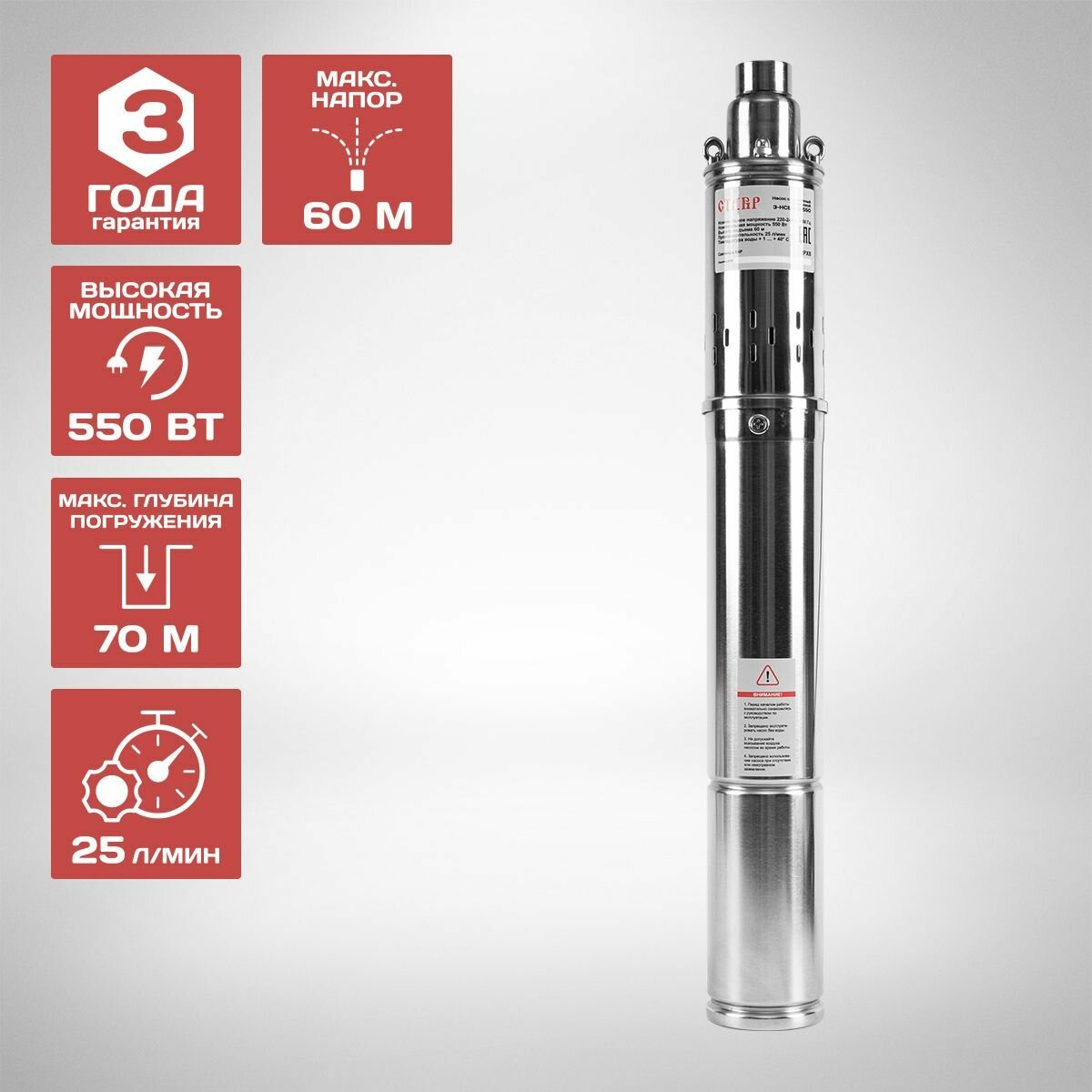 Насос скважинный ETERNA SPR-65 (4400 л/ч, 65 м, 750 Вт, для скважины)