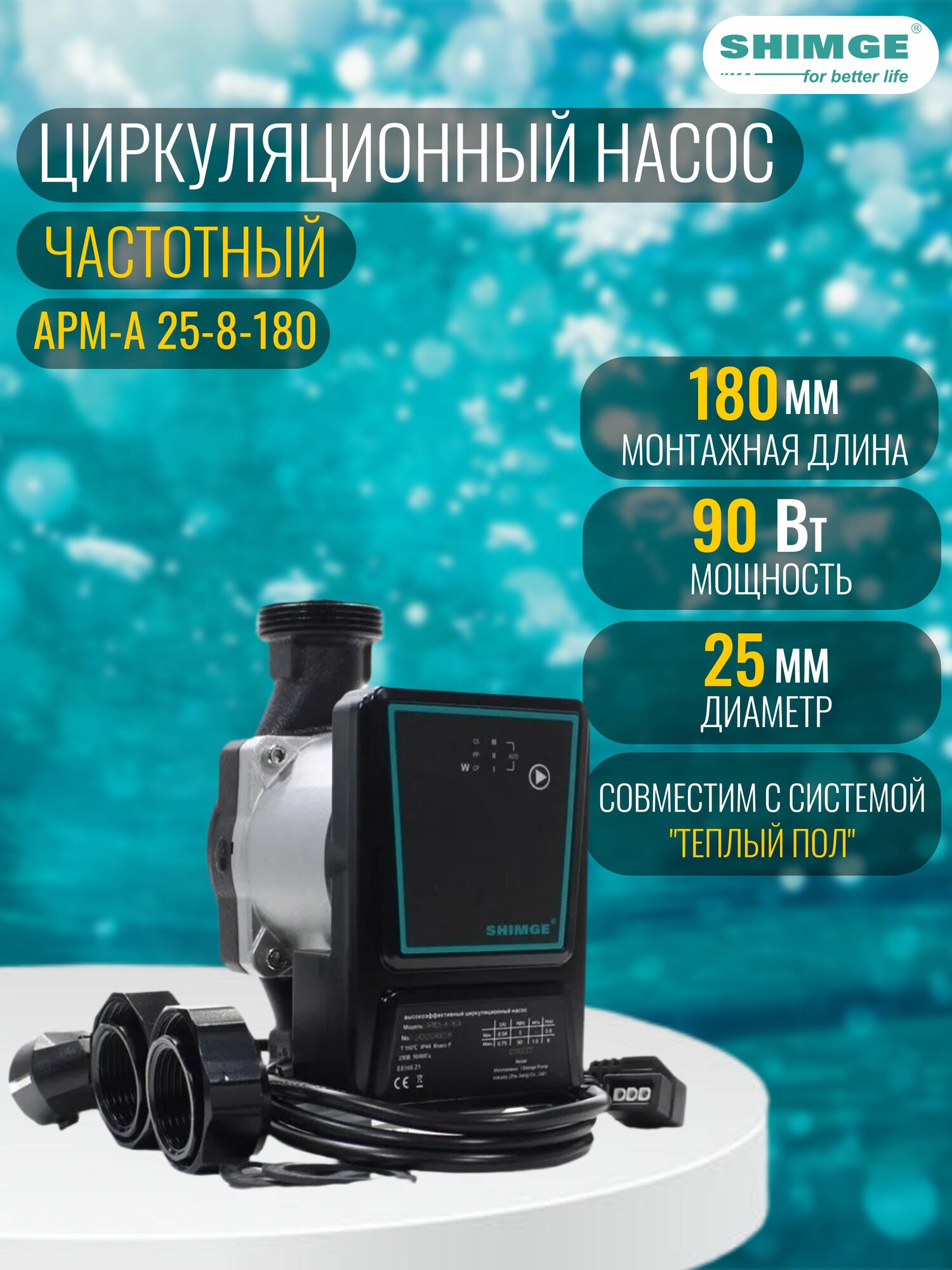 Насос циркуляционный 25-8-180 с частотным преобразователем SHIMGE APM-A 90 Вт, 220В, гайки в комплекте, аналог Grundfos, Valflex, Джилекс, Jemix