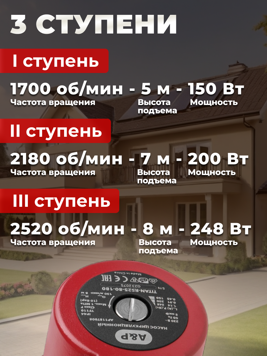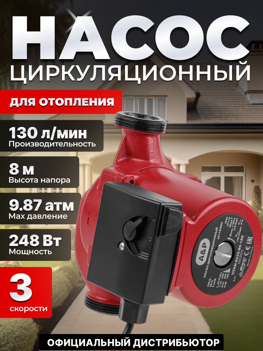 Насос циркуляционный A&P Titan-RS25-80-180 (150-248 Вт, 7800 л/ч, 8 м) (AP118T008): сравнение цен, характеристики, фото, актуальное наличие и цены.