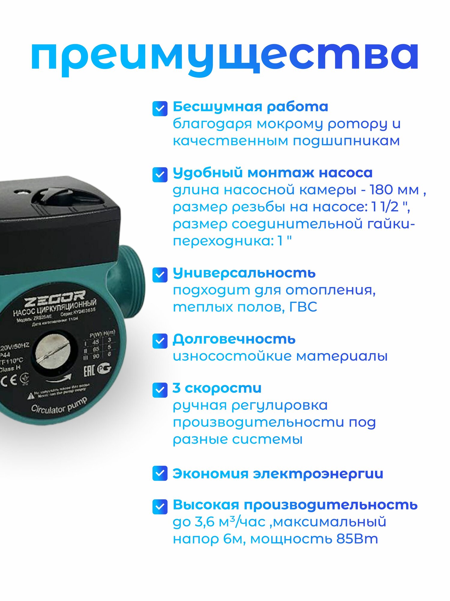 Насос циркуляционный бесшумный для отопления , напор 6 м, 85 Вт, 3 скорости, монтажная высота 180мм: сравнение цен, характеристики, фото, актуальное наличие и цены.