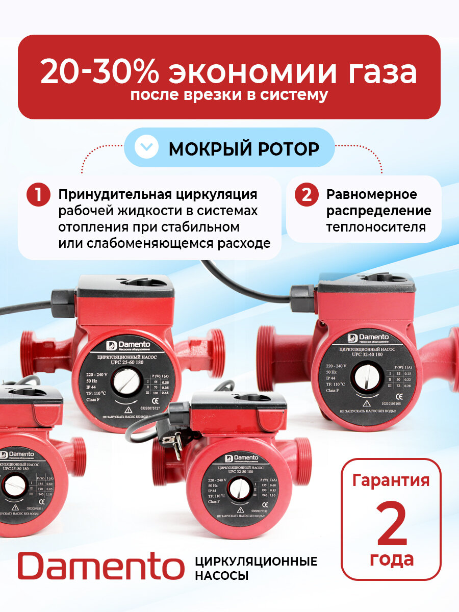Насос циркуляционный для отопления DAMENTO UPC 25-60 (100 Вт, 60л/мин, 6 м, 180 мм): сравнение цен, характеристики, фото, актуальное наличие и цены.