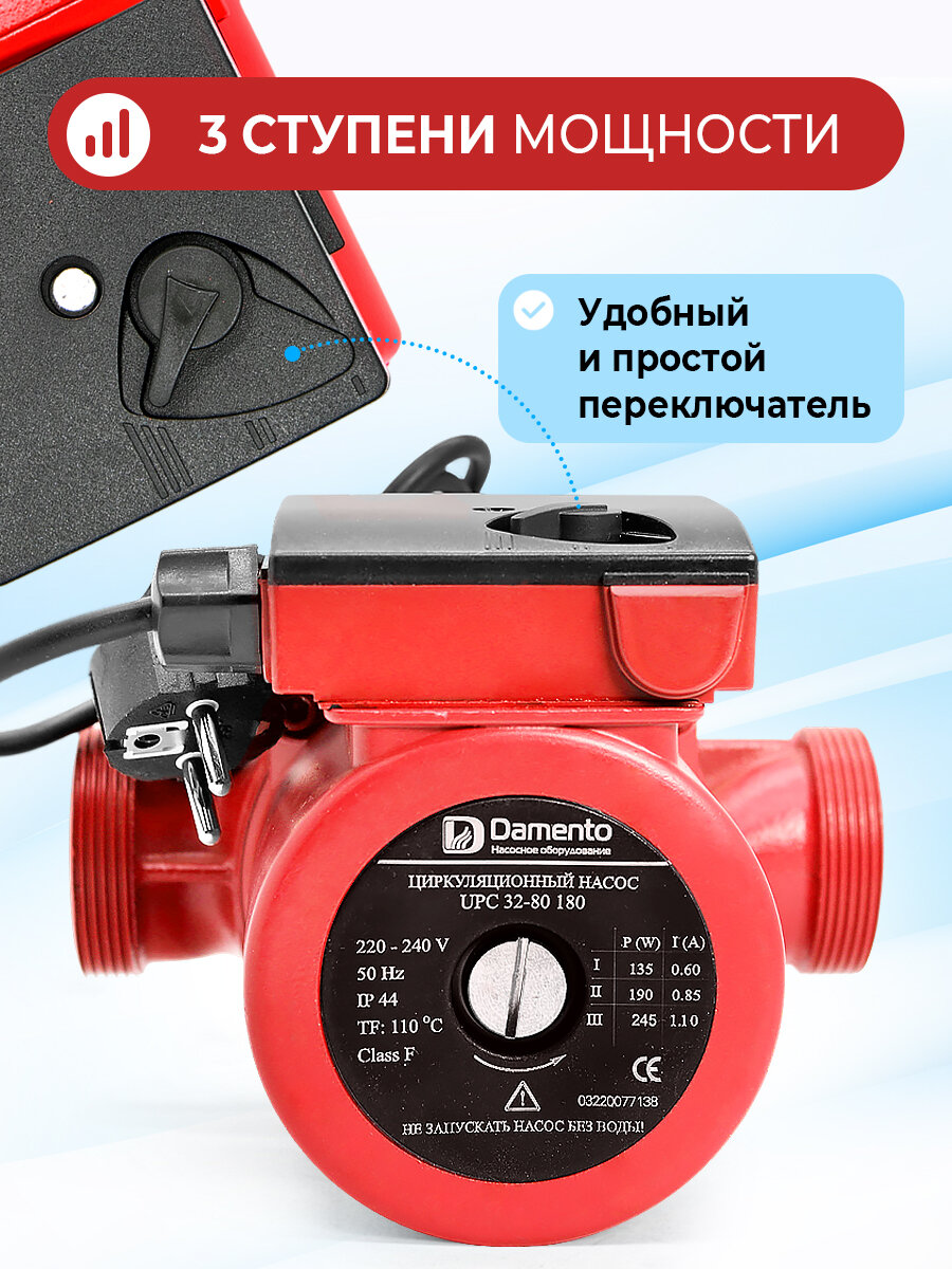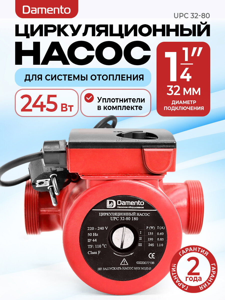 Насос циркуляционный для отопления DAMENTO UPC 32-80 (245 Вт, 180 л/мин, макс. напор 8м, 180мм): сравнение цен, характеристики, фото, актуальное наличие и цены.