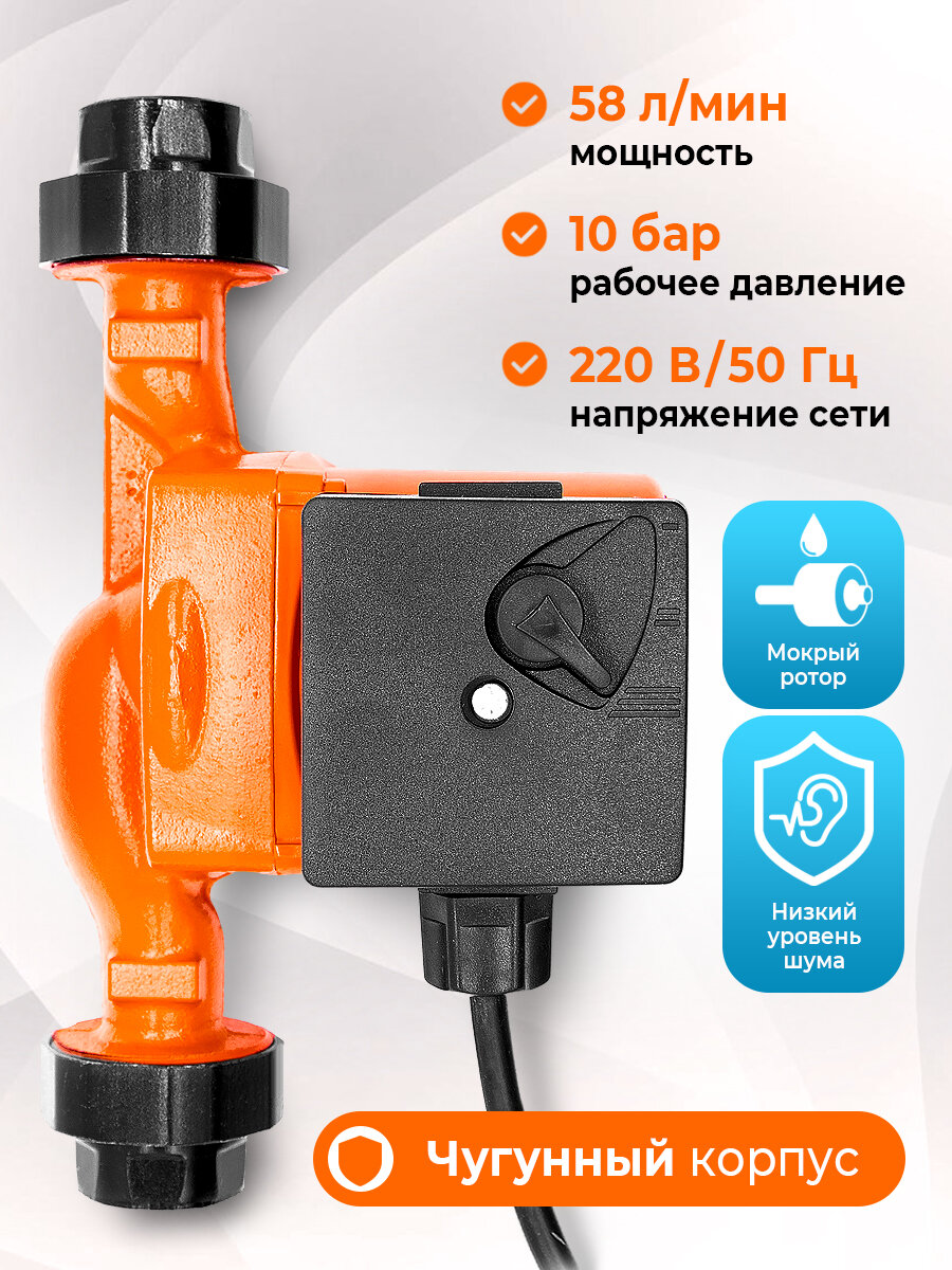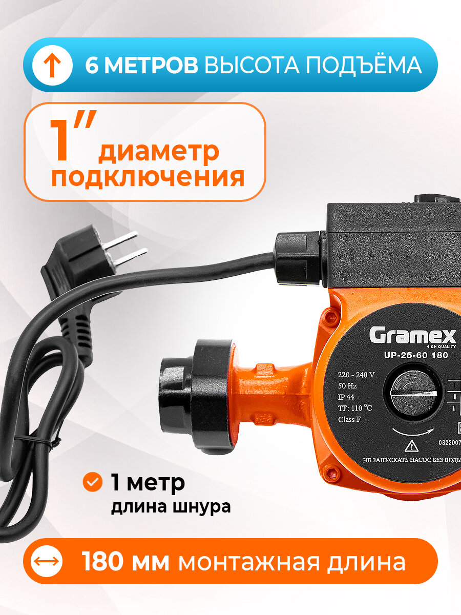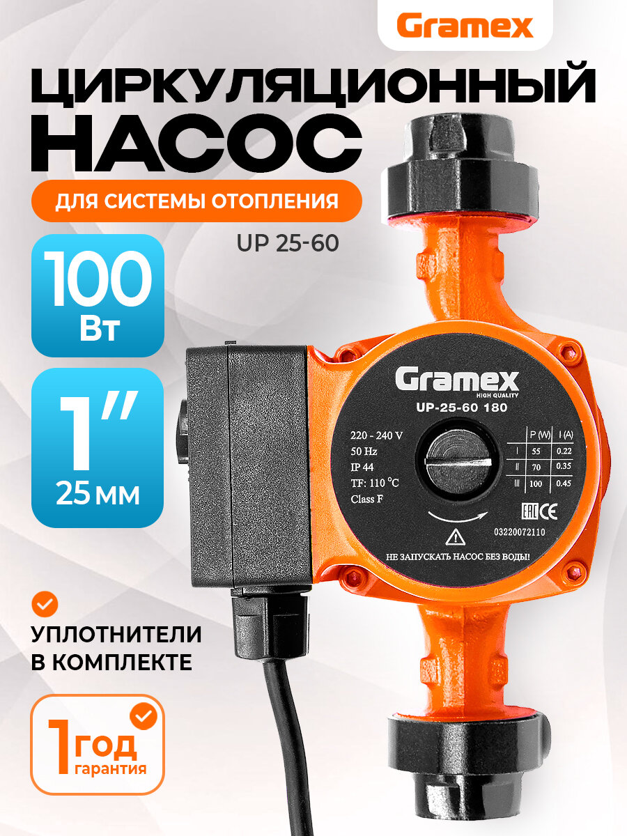 Насос циркуляционный для отопления с проводом GRAMEX UP-25-60 (100 Вт, 58л/мин, макс. напор 6м, 180 мм): сравнение цен, характеристики, фото, актуальное наличие и цены.