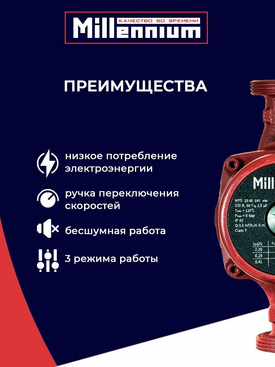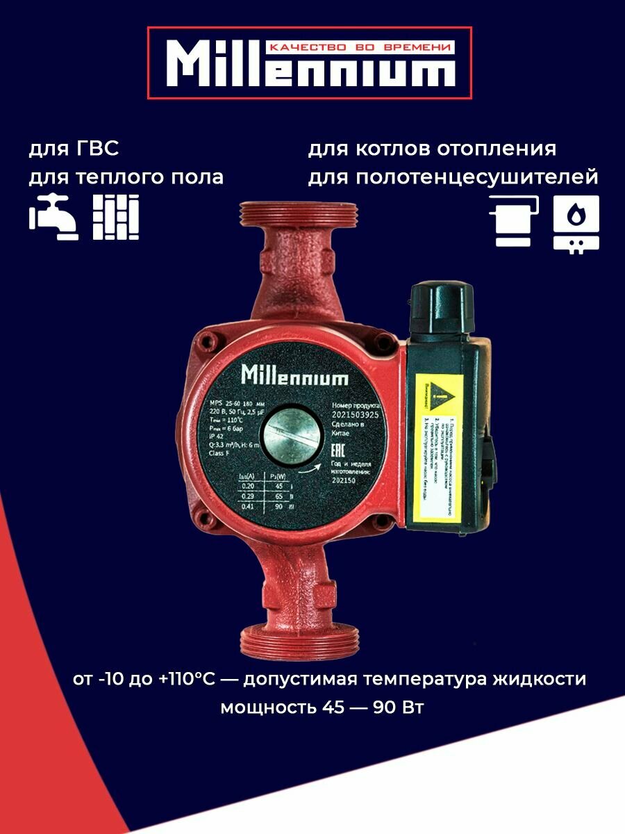 Купить Насос циркуляционный Millennium MPS 25-60 (180мм) с доставкой по всей России. Насос циркуляционный Millennium MPS 25-60 (180мм): сравнение цен, характеристики, фото, актуальное наличие и цены.