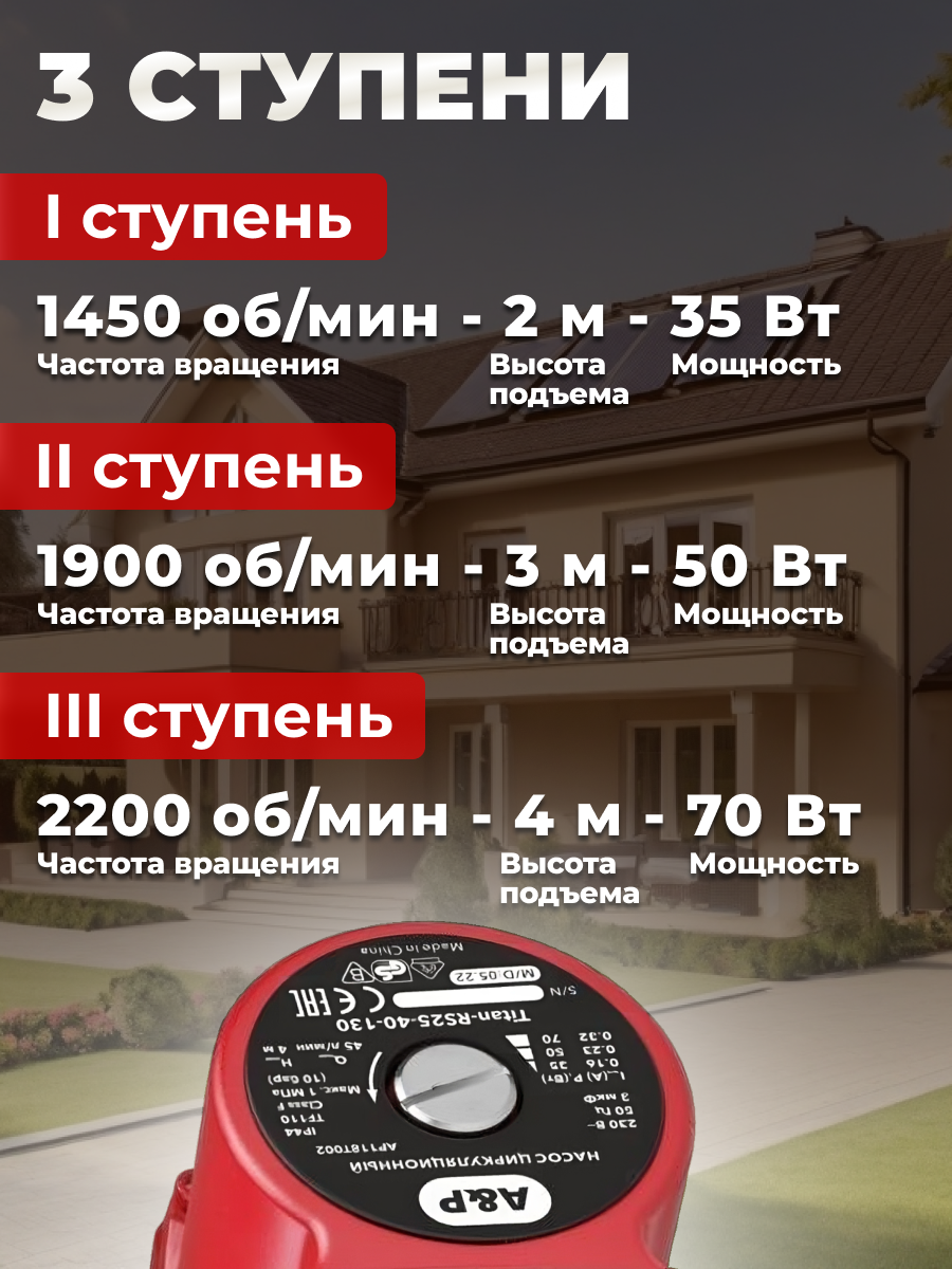 Насос циркуляционный Titan-RS25-40-130, A&P 35-70 Вт, 2700 л/ч, 4 м(AP118T002): сравнение цен, характеристики, фото, актуальное наличие и цены.