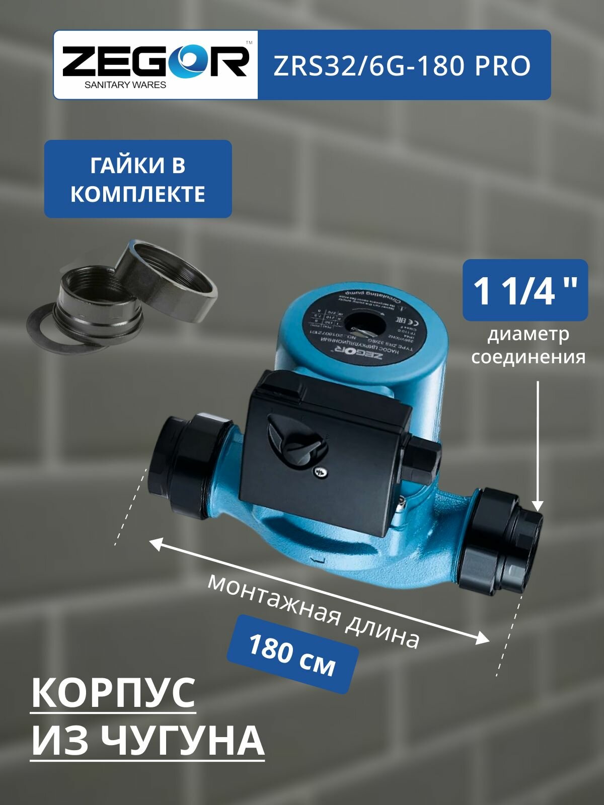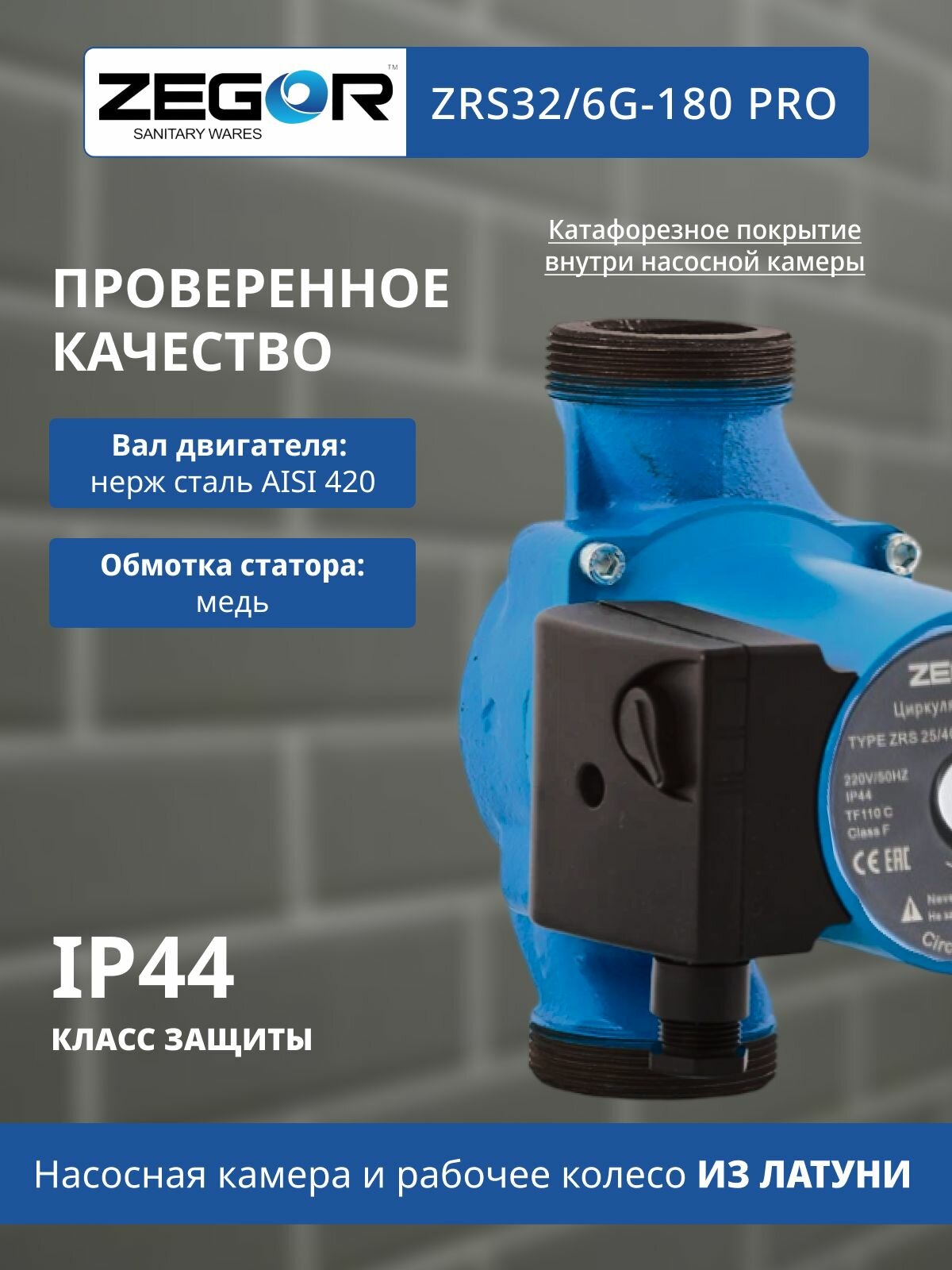 Насос циркуляционный ZRS32/6G-180 Pro ZEGOR (бесшумный): сравнение цен, характеристики, фото, актуальное наличие и цены.