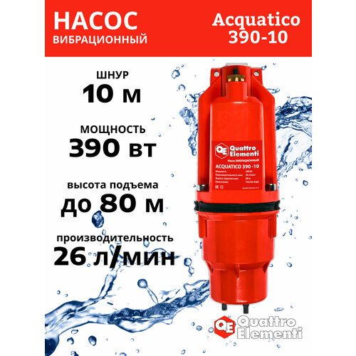 Погружной насос Quattro Elementi Acquatico 390-10 910-362 является вибрационным и решает задачу перекачивания воды из колодца или скважины. При мощности электродвигателя 390 Вт эта модель с производительностью на уровне 26 л/мин гарантирует подачу чистой воды для удовлетворения нужд домашнего хозяйства и приусадебного участка. Насос в металлическом, герметичном красном корпусе обеспечивает подъем чистой воды без твердых включений на высоту до 80 метров.