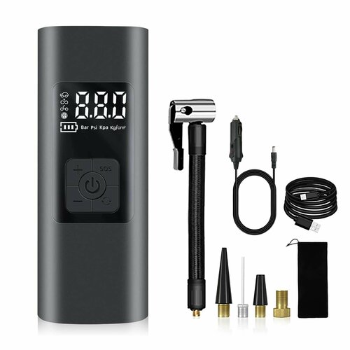Насос воздушный электрический беспроводной с функцией дефляции шин, светодиодный, с USB зарядкой, для автомобилей, мотоциклов, велосипедов, мячей: сравнение цен, характеристики, фото, актуальное наличие и цены.