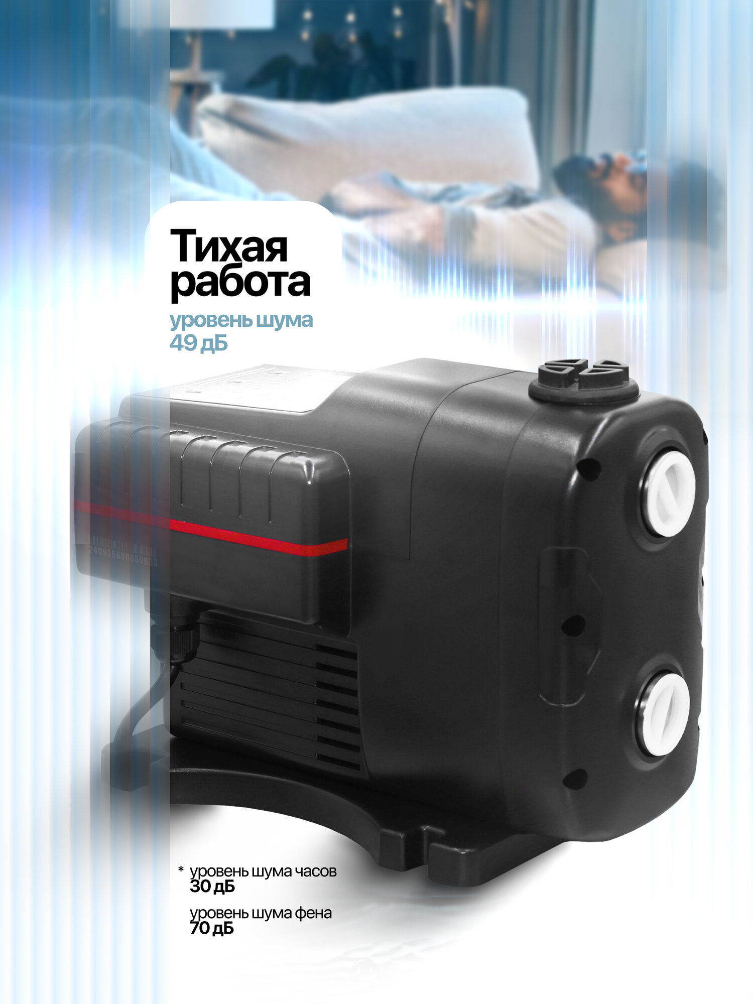 - Низкий уровень шума: В штатных условиях работы уровень производимого DEFEDNER шума составляет всего 49 дБ(А), что делает её одной из самых бесшумных установок для водоснабжения в своём классе.
