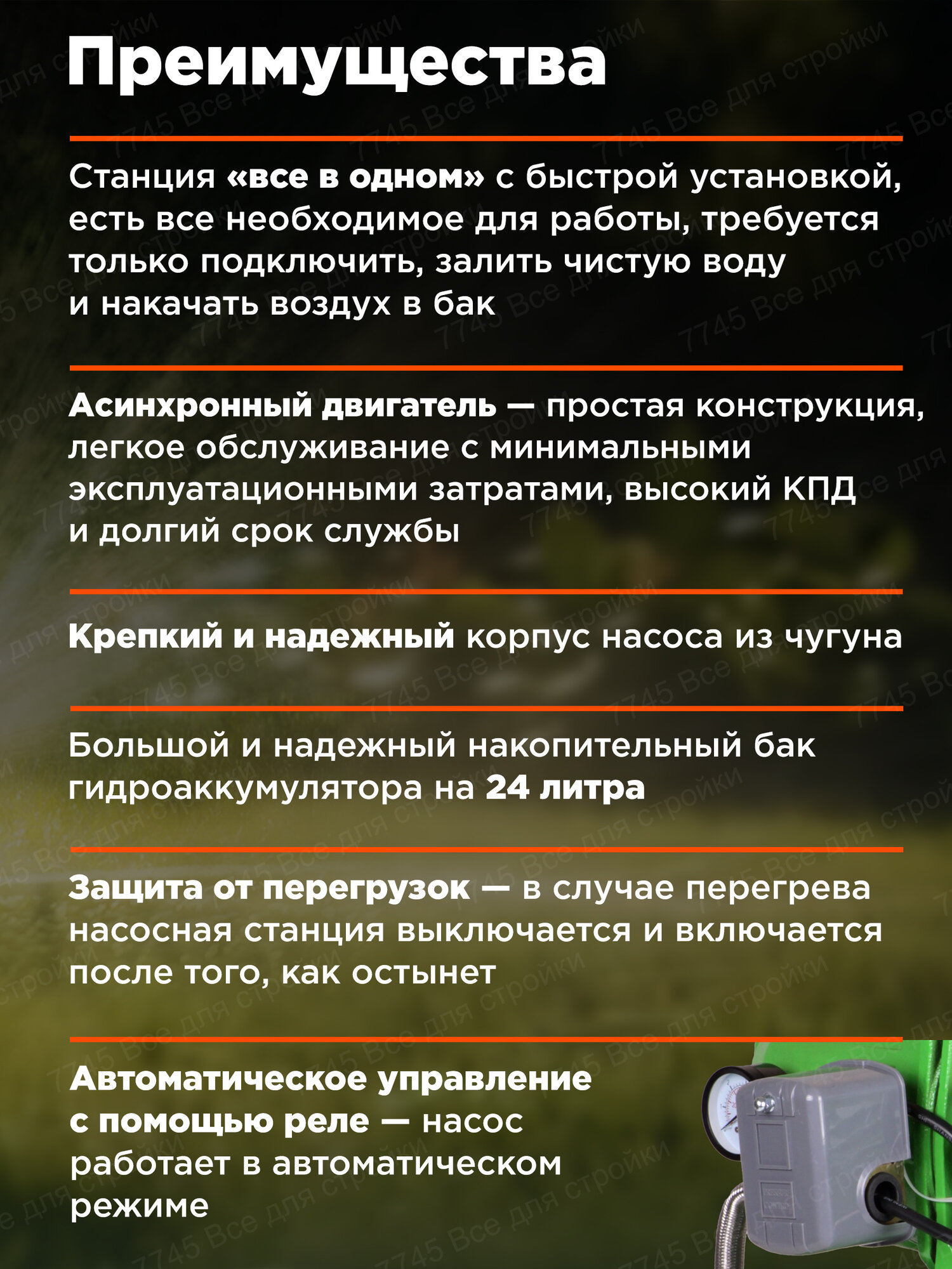 Автономная станция водоснабжения Вихрь АСВ-70/40 Н-20, 1200 Вт, напор – 40 м, 70 л/мин, гидроаккумулятор – 20 л