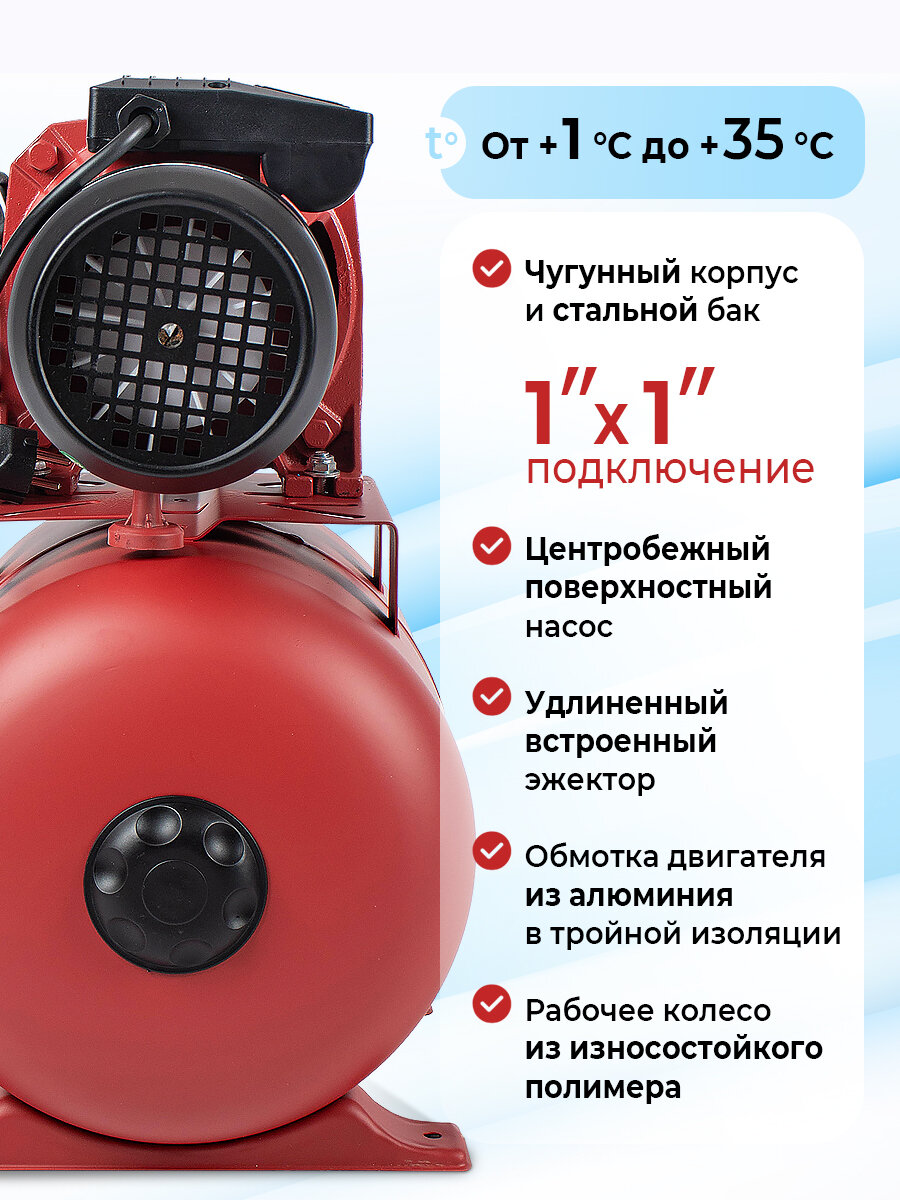 Насосная станция для воды DAMENTO АНС 900У,24Ч , 900Вт, ресивер 24 л, чугун, подъем 45м: сравнение цен, характеристики, фото, актуальное наличие и цены.