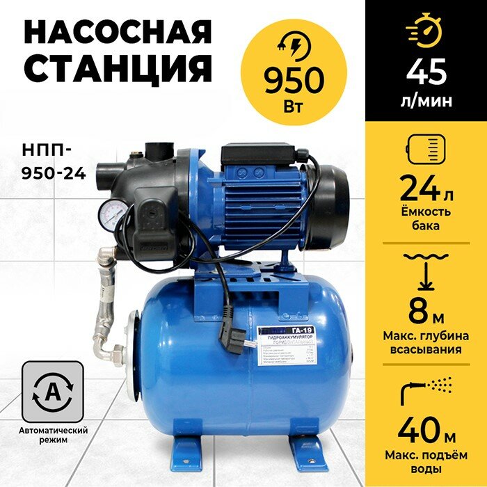 Купить Насосная станция для воды НПП 950-24, 950Вт, 2700 л/ч, ресивер 24л, подъём 40м, прочный пластик с доставкой по всей России. Насосная станция для воды НПП 950-24, 950Вт, 2700 л/ч, ресивер 24л, подъём 40м, прочный пластик: сравнение цен, характеристики, фото, актуальное наличие и цены.