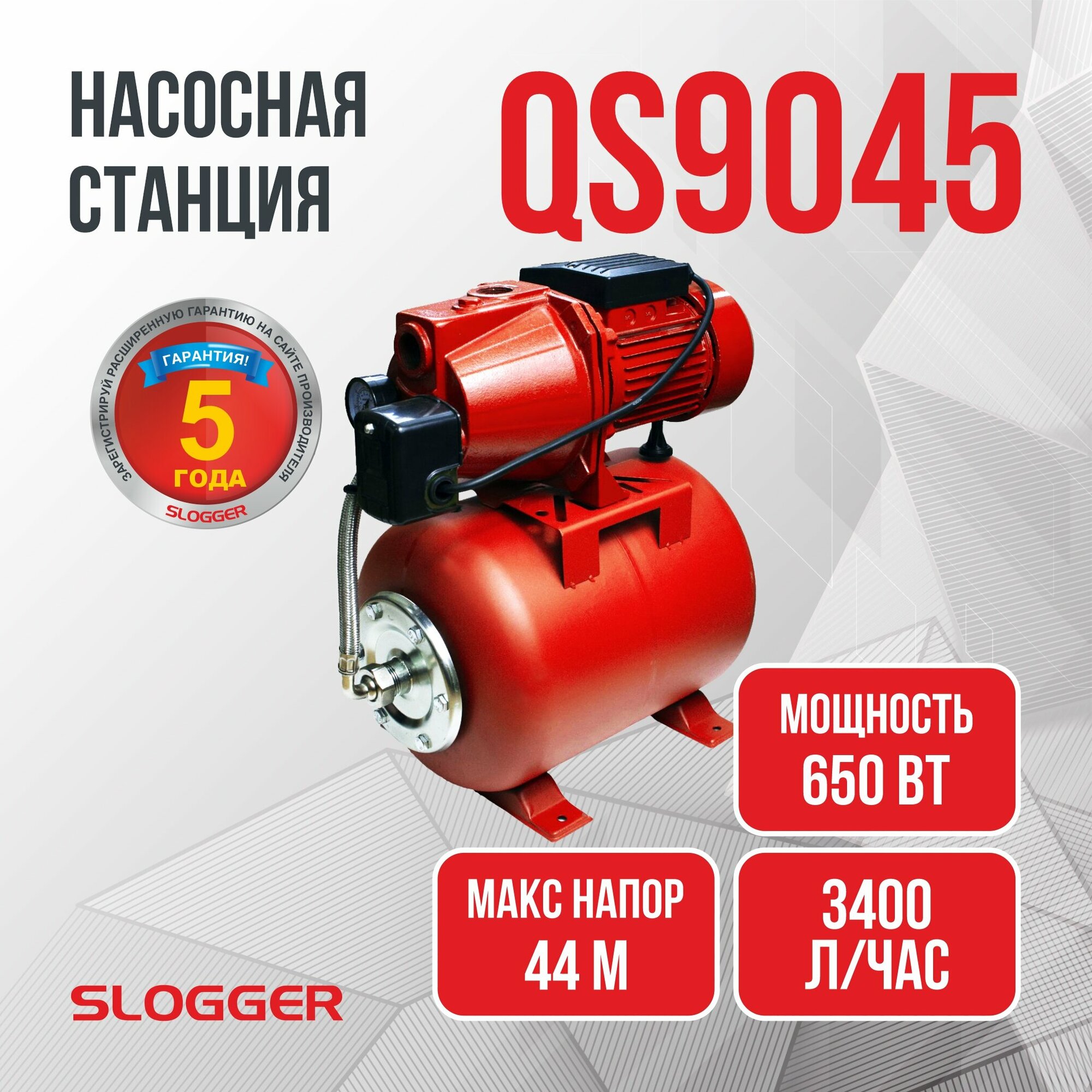 Насосная станция SLOGGER QS9045 имеет расширенную гарантию 5 лет при регистрации на сайте производителя.