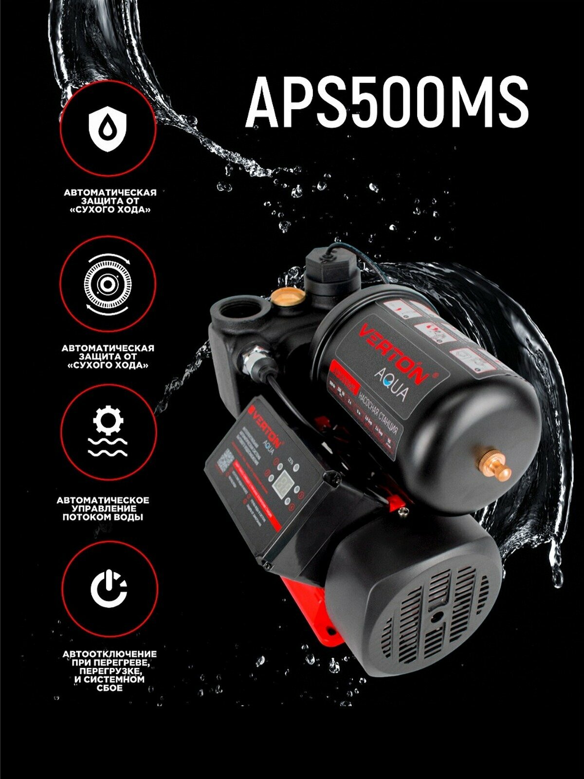 Купить Насосная станция Verton AQUA APS500MS (500Вт, 50л/мин, 2л, гл. 9м, H 38м, вых. 1″, 2.4 бар, дисплей) с доставкой по всей России. Насосная станция Verton AQUA APS500MS (500Вт, 50л/мин, 2л, гл. 9м, H 38м, вых. 1″, 2.4 бар, дисплей): сравнение цен, характеристики, фото, актуальное наличие и цены.