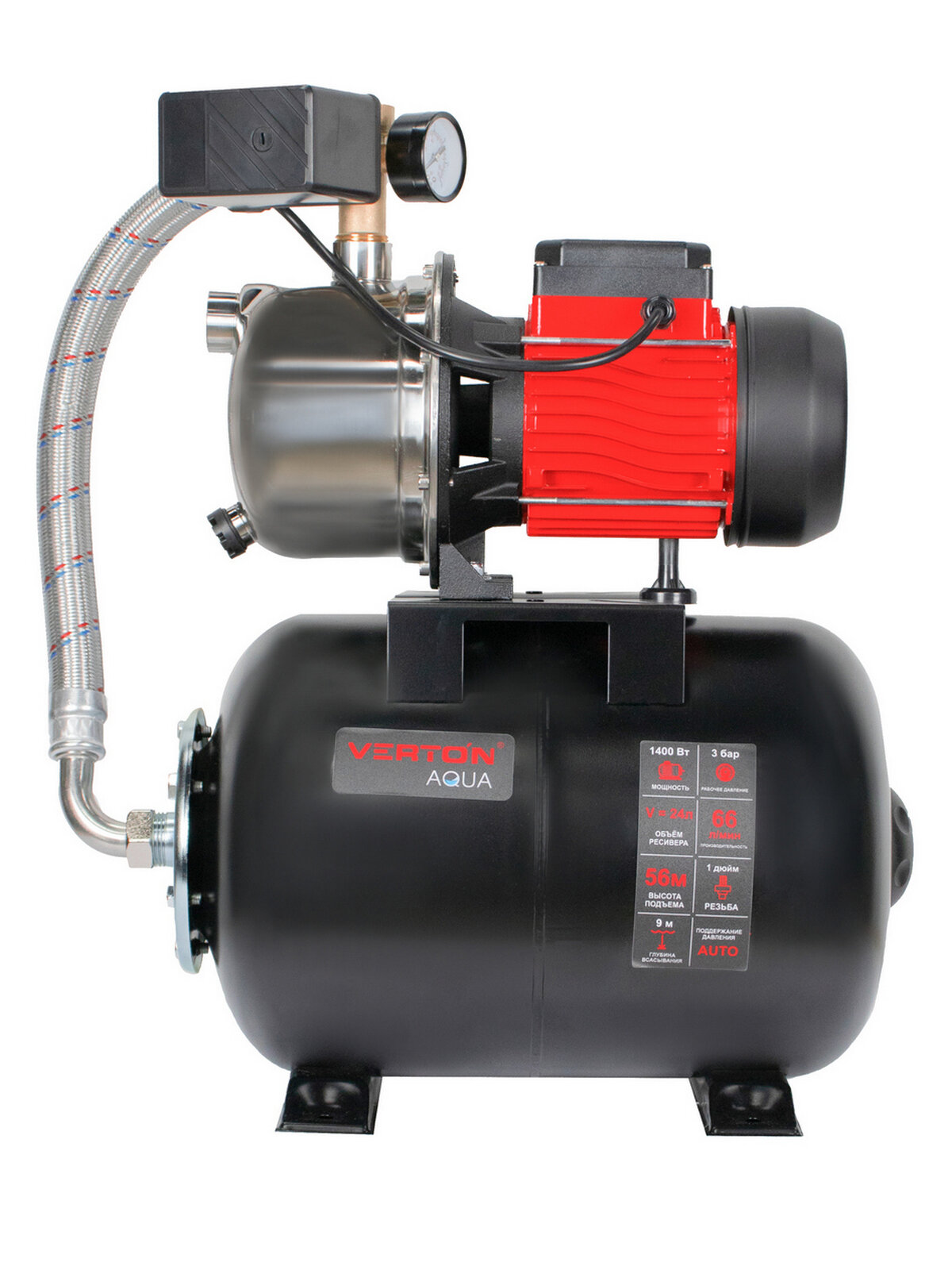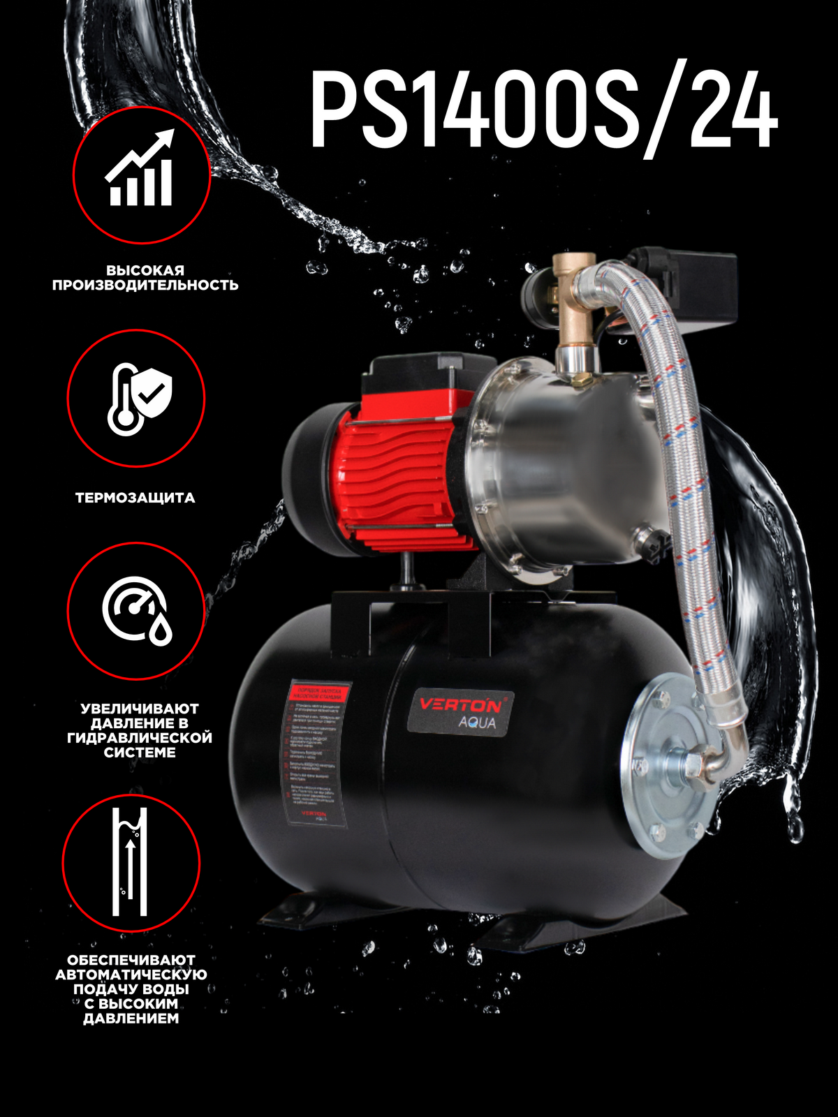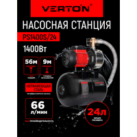 Купить Насосная станция Verton AQUA PS1400S/24 (1400Вт, 66л/мин, 24л, гл. 9м, h 56м, вых. 1/32″, 3 бар) с доставкой по всей России.