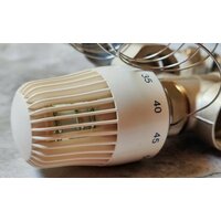 температура в этом контуре поддерживается термостатическим вентилем с установленной на нём термостатической головкой с погружным датчиком температуры. Необходимое количество тепла поступает из высокотемпературного контура отопления (котла). Температура подачи теплоносителя отображается на термометре.