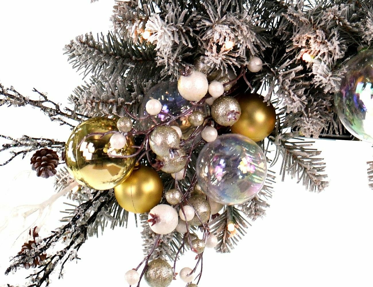 Купить Настенная хвойная композиция с лампочками этуаль ДЕ конифер, хвоя ПВХ, 35 тёплых белых мини LED-огней, 66 см, A Perfect Christmas 31WJS66B с доставкой по всей России.