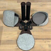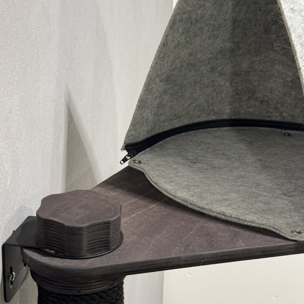 Когтеточка выполнена в черном цвете, который легко впишется в любой интерьер. Материал изделия - гипоаллергенный фетр и фанера, что делает его безопасным для людей и животных.
