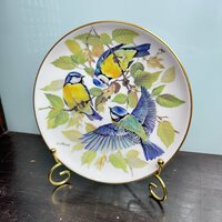 Декоративная коллекционная тарелка из сериии "Европейские певчие птицы" по картинам художницы Урсулы Бэнд. Тарелки выпущены под патронажем Всемирного фонда дикой природы. Серия тарелок ограниченным тиражом с сертификатами и буклетом, в котором описана разновидность птиц на тарелке, а так же информация о художнице. Тарелка выпускались на заводе Tirschenreuth в 1986 году