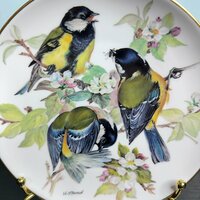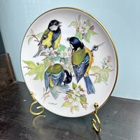 Декоративная коллекционная тарелка из сериии "Европейские певчие птицы" по картинам художницы Урсулы Бэнд. Тарелки выпущены под патронажем Всемирного фонда дикой природы. Серия тарелок ограниченным тиражом с сертификатами и буклетом, в котором описана разновидность птиц на тарелке, а так же информация о художнице. Тарелка выпускались на заводе Tirschenreuth в 1986 году
