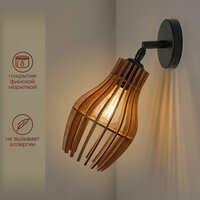 Настенный светильник изготовлен из натурального, экологически чистого дерева — березовой фанеры. При изготовлении используется покрытие высокого качества, что обеспечивает долгий срок службы. Также оно не имеет запаха, и обладает гипоаллергенными свойствами, делая использование более комфортным. Деревянный плафон имеет следующие габаритные размеры: диаметр 14 см, высота 21 см, диаметр основания 10 см. Светильник поставляется в собранном виде, а значит вам не понадобится изучать сложные схемы и тратить время на сборку. На плафон уже установлен металлический патрон E27 на поворотной ножке, совместимый с большинством доступных лампочек. Направление плафона может регулироваться. Вся фурнитура исполнена в стильном черном цвете, патрон имеет матовое покрытие. Повесить светильник не составит труда, в комплекте уже предусмотрена планка для размещения как на стене, так и на потолке. Площадь освещения до 10 кв. м. Яркость будет зависеть от установленной лампочки, мы рекомендуем использовать светодиодные лампы или «лампы Эдисона». Обратите, пожалуйста, внимание, лампочка в комплект не входит. Перед изготовлением абажура весь древесный материал проходит несколько стадий обработки и идеально шлифуется, чтобы исключить появление неровностей и образование заноз, придать гладкую форму всем деталям. Бра изготовлено из высококлассной березовой фанеры толщиной 4 мм, что придает ей природный и теплый вид. Минималистичный эко дизайн подчеркнет плавные линии или же создаст строгую геометрию в вашем интерьере, в зависимости от выбранной модели. Цвет патрона и мягкий свет лампочки создают элегантный и уютный внешний вид. Интерьерные светильники — это эффективный способ расставить световой акцент в вашей кухне, прихожей, гостиной, спальне или детской. Подойдет для дополнительного освещения над барной, кухонной зоной или на балконе. Создаст уютную и теплую атмосферу в вашей квартире или на даче. Отлично подойдет для любого помещения в загородном доме, от коридора до бильярдной, впишется в любой дачный интерьер. Заказывая несколько штук, вы легко создадите световые акценты и в коммерческих помещениях, будь то офис, кафе, ресторан или салон красоты. Кроме того, это отличный подарок для друзей, родных и близких, которые ценят красивый и функциональный дизайн. C Заботой о Вас и о Вашем Освещении, Brillight.