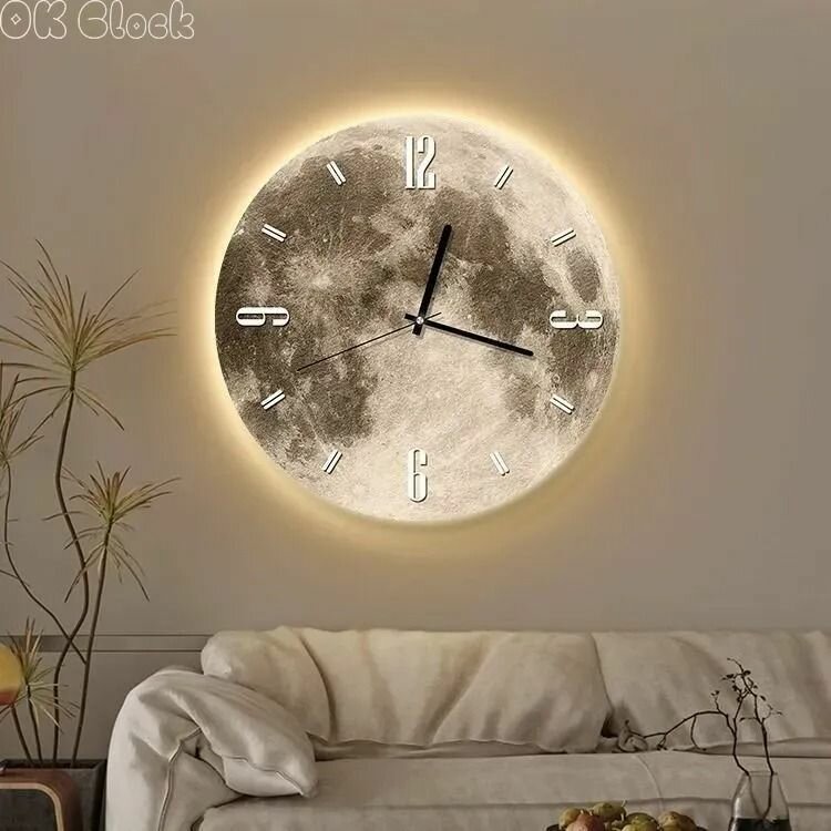 Купить Настенные часы в форме луны; светящиеся настенные часы с доставкой по всей России.