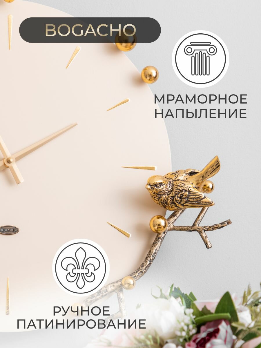 Купить Настенные механические часы Bogacho Терра кремовые с мраморными фигурками птичек и стрелками бронзового цвета с доставкой по всей России. Настенные механические часы Bogacho Терра кремовые с мраморными фигурками птичек и стрелками бронзового цвета: сравнение цен, характеристики, фото, актуальное наличие и цены.