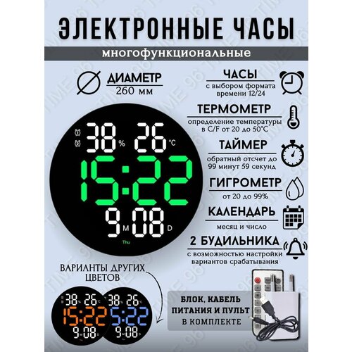 - Размер LED цифр: Время – 80мм, гигрометр и температура - 50мм, календарь – 45мм