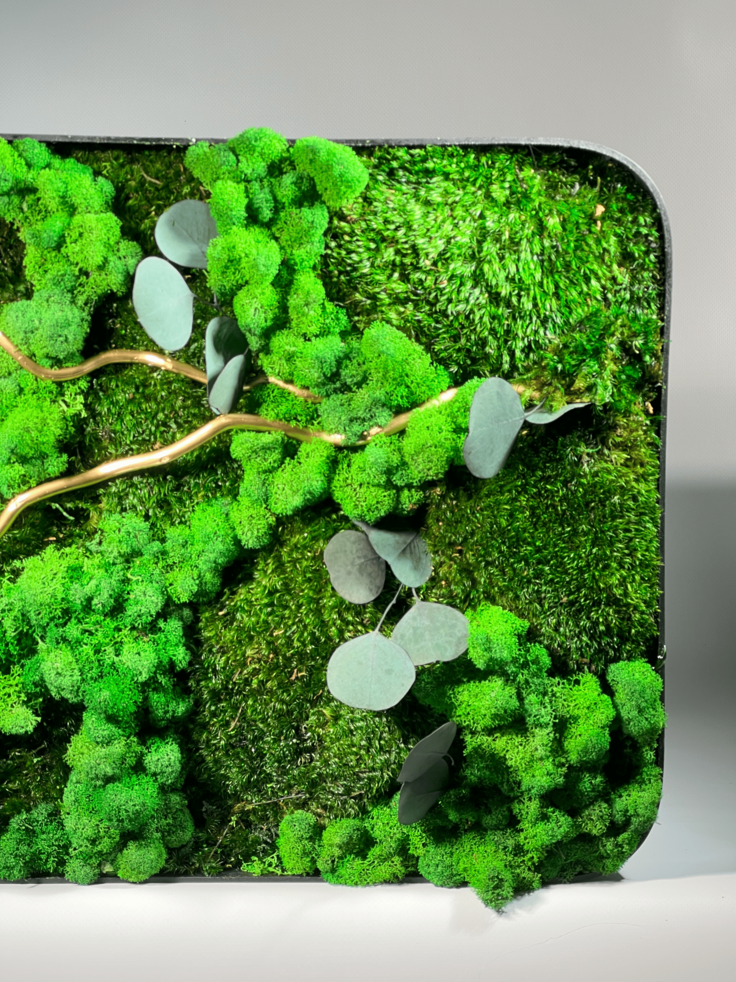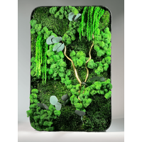 Настенное панно ручной работы из стабилизированного мха ягель и кочкового мха в стильной черной пластиковой раме. Живая картина - оригинальный подарок маме, жене или девушке, это прекрасная идея подарка на 8 марта, 14 февраля и день рождения. Стабилизированный мох - натуральный материал, не требующий ухода и полива, сохраняющий свою внешность до 10 лет. Он обработан по специальной технологии, безопасной для здоровья человека, что подтверждено сертификатом качества, поэтому картину можно повесить даже в детскую комнату. Дизайнерская картина подойдет в качестве оригинального подарка, она легко впишется в интерьер в стиле лофт, скандинавский стиль. Панно можно переворачивать, каждый раз меняя восприятие картины. Так как все картины выполнены из природных материалов, композицию картины невозможно повторить точь-в-точь, поэтому каждая картина будет немного отличаться друг от друга. Вы можете комбинировать картины друг с другом, создавая на стене целую экспозицию.