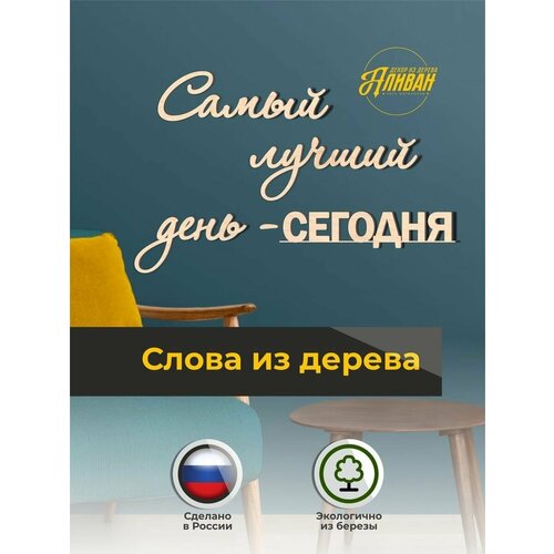 Панно на стену в виде слов "Самый лучший день сегодня". Надписи на стену изготовлены из березовой фанеры высшего сорта. Толщина каждого слова 3 мм. Декор для комнаты состоит из отдельных элементов, которые размещаются на стену и образуют целостное панно - декоративную надпись. Слова из дерева приклеиваются на стену термопистолетом или клеем жидкие гвозди (в комплект не входят). Настенная декорация изготовлена из дерева, это не интерьерные наклейки, а объемный 3d декор. Многоразовый декор, который прослужит вам долгие годы. Декорация на стену – это современный декор для кухни, декор для спальни, в гостиную. Надписи на стену для декора помогут обновить интерьер, скрыть небольшие повреждения или дефекты на стене и добавят уюта в ваш дом. Оформление стены вместо настенного постера, картины. Этот банер из слов идеально подходит для оформления стены в прихожей, стены в гостиной, стен в спальне, детской комнате, над кроватью и над подголовником кровати, в гардеробной комнате, в офисе. Интерьерное панно это прекрасная замена картинам по номерам, постерам, плакатам. Мотивирующие цитаты на стену тренд 2025 в дизайне интерьера. Вы можете выбрать надпись, которая отражает вашу личность или важные события в вашей жизни. Стильные и эстетичные предметы интерьера станут настоящим украшением вашей комнаты. Надписи на стену - это отличный способ выразить свои мысли и чувства. Декор из дерева станет отличной идеей подарка для ваших близких и родных. Приятный подарок молодоженам на годовщину свадьбы, подарок маме, папе, бабушке, дедушке, другу, подруге, брату, сестре на новый год, день рождения, юбилей, свадьбу, на новоселье и любой другой праздник. Деревянные надписи можно снять со стены и приклеить обратно, например во время ремонта. Поэтому мы считаем, что это многоразовый декор. Слова из дерева можно использовать для семейной фотосессии, свадебной фотосессии или для фото с детьми и друзьями. Многоразовые объемные стикеры из дерева помогут организовать дизайн свадьбы, вечеринки или фотосессии на день рождения (фотозона, фотофон). Современное и модное панно на стену станет удачным штрихом в завершении ремонта, сделает новоселье ещё более радостным или освежит уже привычный интерьер. При желании к настенной декорации можно добавить фоторамки в том же стиле и цвете. У вас получится настенный фотоколлаж из ваших фото. Для выбора и заказа фоторамок переходите на страницу нашего бренда, кликнув на логотип. Там же вы можете выбрать подарки и сувениры из дерева: салфетницы настольные, новогодние игрушки, ключницы и многое другое. 3D панно из слов - идеальное решение для тех, кто хочет преобразить свой интерьер быстро и недорого. Представленные цвета надписей подойдут для любого покрытия ваших стен. Будь то белая однотонная стена, цветные обои, декоративная штукатурка. Деревянная надпись в стиле лофт, так же подойдет для украшения кафе, салона красоты, офиса и других помещений.