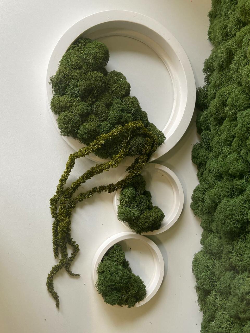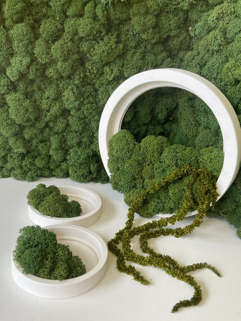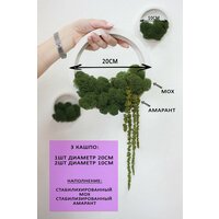 Особенностью всех кашпо является наличие стабилизированного мха зеленого цвета. Стабилизированный мох - это живой мох, пропитанный специальным составом на основе глицерина, воды и красителя. Все компоненты, используемые при стабилизации, полностью натуральные, что делает мох безопасным для окружающей среды. Благодаря этому составу, мох остается мягким и красивым до 10 лет, радуя вас своей свежестью и яркостью.