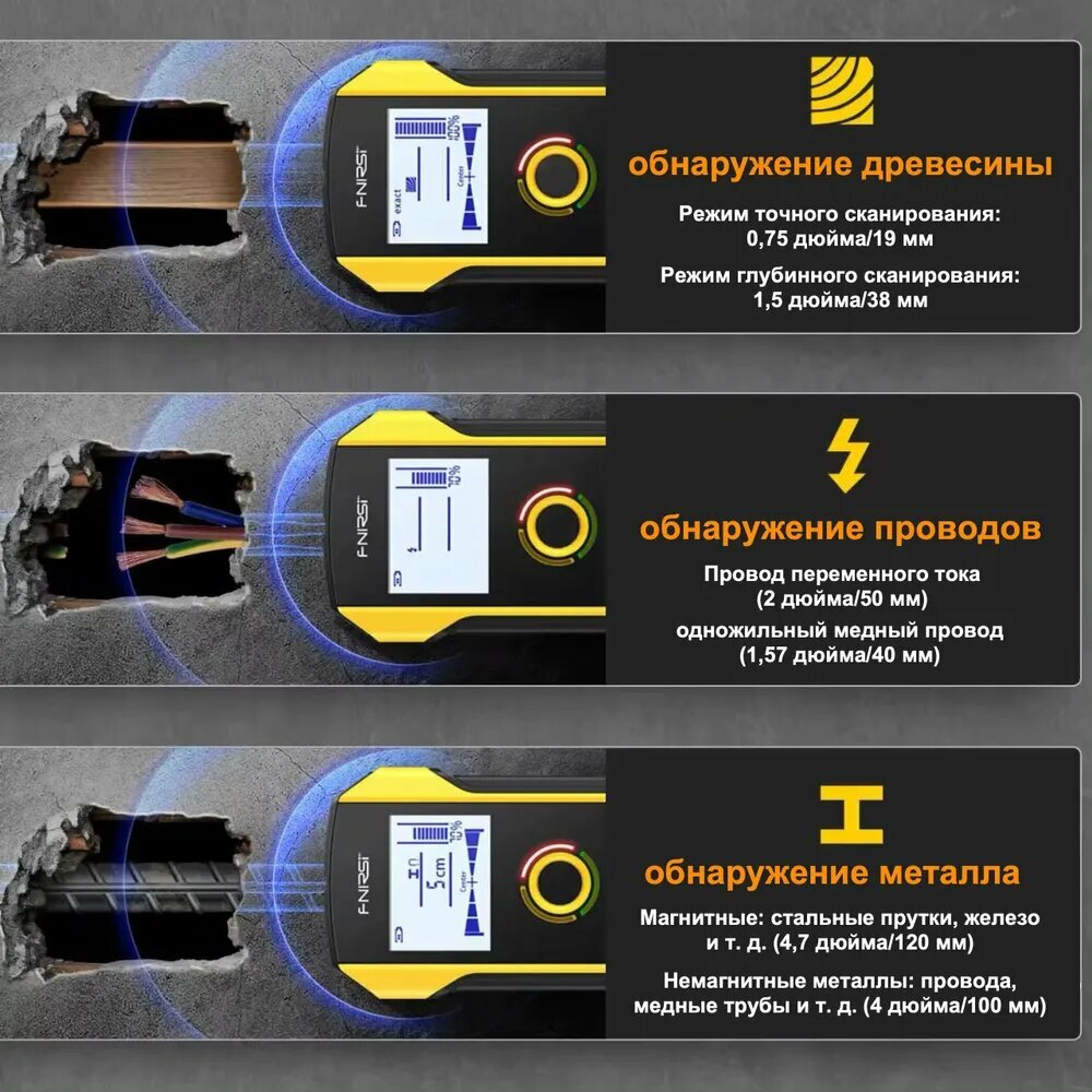 Настенный детектор FNIRSI/детектор скрытой проводки, Обнаружение металла, кабелей, дерева: сравнение цен, характеристики, фото, актуальное наличие и цены.