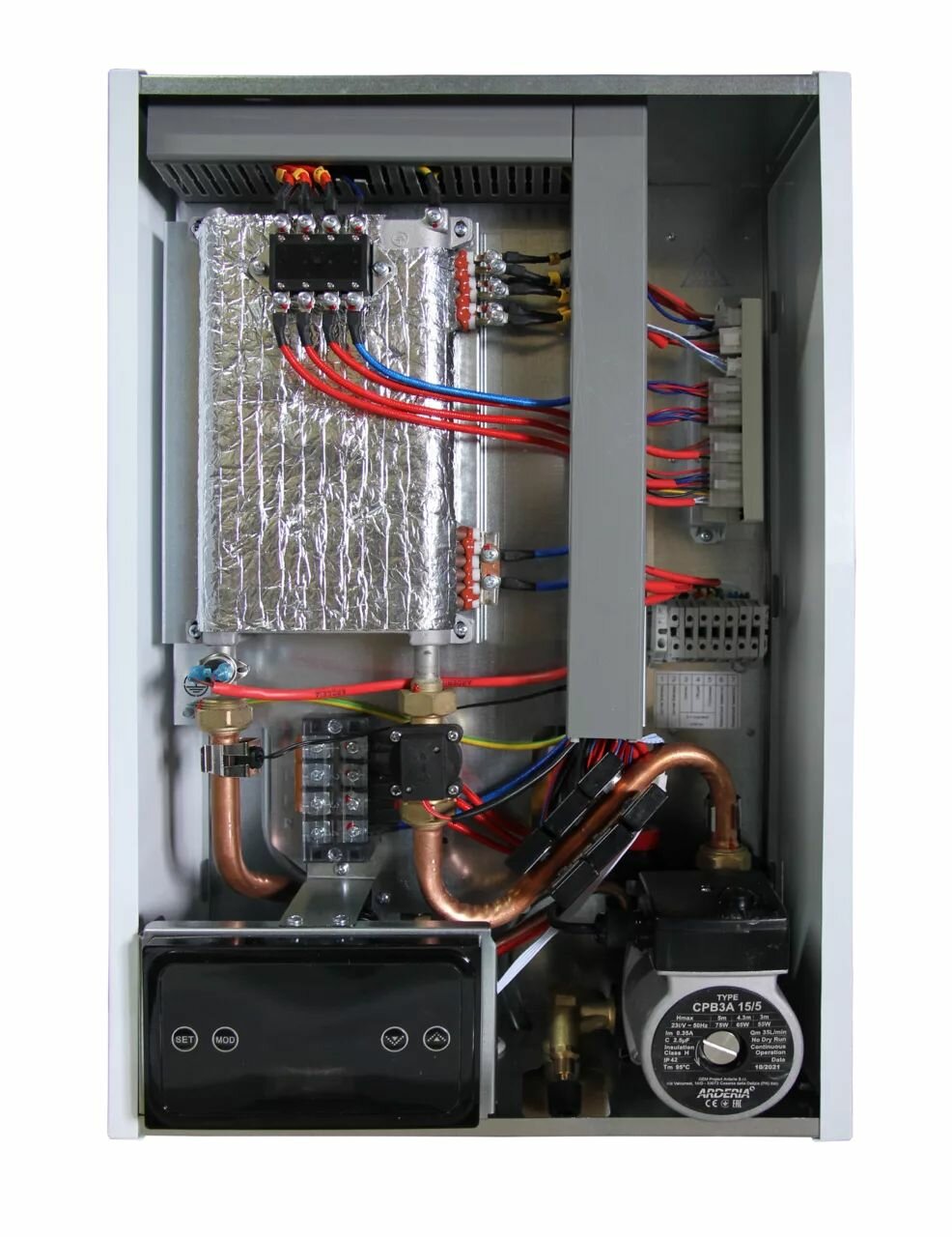 | Особенности | воздухоотводчик, встроенный расширительный бак, встроенный циркуляционный насос, манометр, предохранительный клапан, разъем для подключения внешнего управления, термометр |