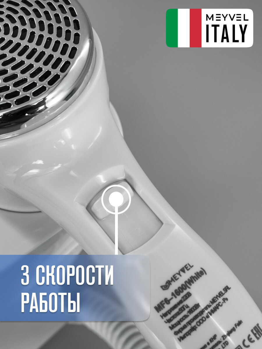 Фен настенный Meyvel для волос с держателем белый MF6-1600 (White): сравнение цен, характеристики, фото, актуальное наличие и цены.