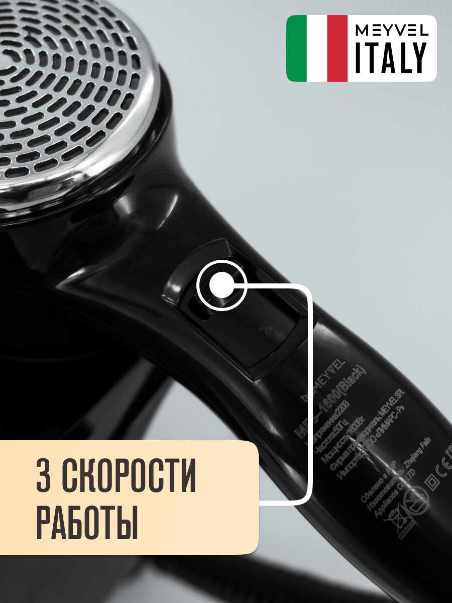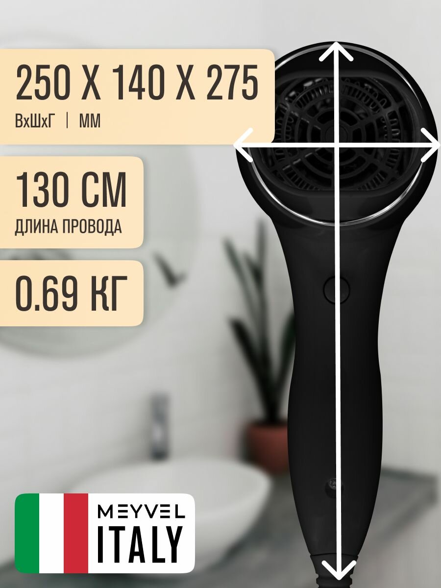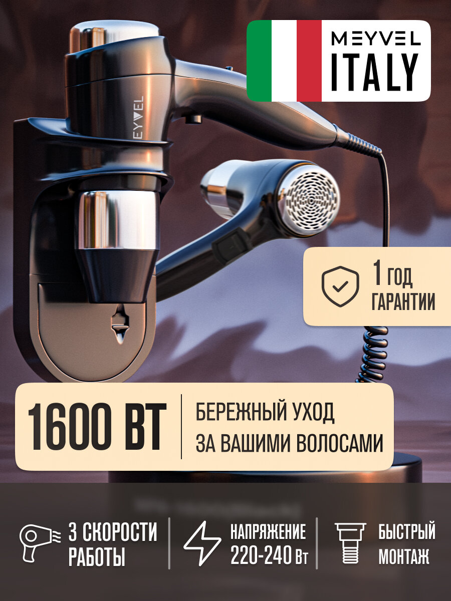 Купить Фен для волос настенный Meyvel с держателем черный MF6-1600 (Black) с доставкой по всей России.