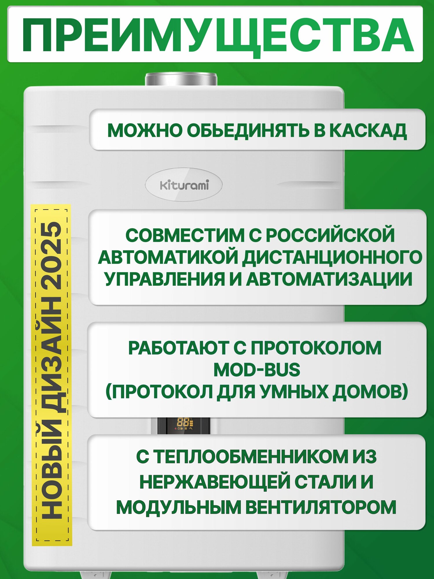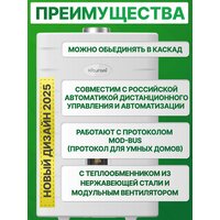 2) В данных котлах предусмотрена возможность менять мощность по отоплению, при этом мощность ГВС остается той же. Соответственно мы исключаем проблему с тактованием предыдущих моделей, когда клиенты приобретали наши котлы большой мощности для помещения с небольшой отапливаемой площадью.