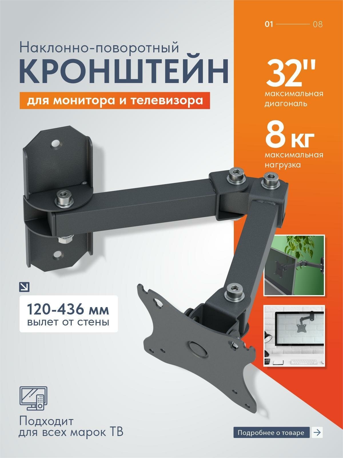 Настенный кронштейн для ТВ и монитора РЭМО K-511, 15″-32″ наклонно-поворотный: сравнение цен, характеристики, фото, актуальное наличие и цены.