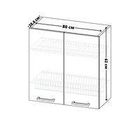 Размеры шкафа составляют 62х80х28,6 см, что позволяет разместить в нем достаточное количество посуды и кухонных принадлежностей. Установка шкафа осуществляется на стену, что позволяет сэкономить пространство на полу. В комплектацию входят инструкция по сборке, крепеж и фурнитура, что позволяет самостоятельно собрать шкаф без привлечения специалистов. Обратите внимание, что мойка и полки для сушки в комплектацию не входят.
