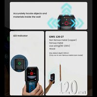 Настенный сканер BOSCH GMS120-27, для цветных металлов и силовых кабелей, цифровой, литиевая батарея: сравнение цен, характеристики, фото, актуальное наличие и цены.