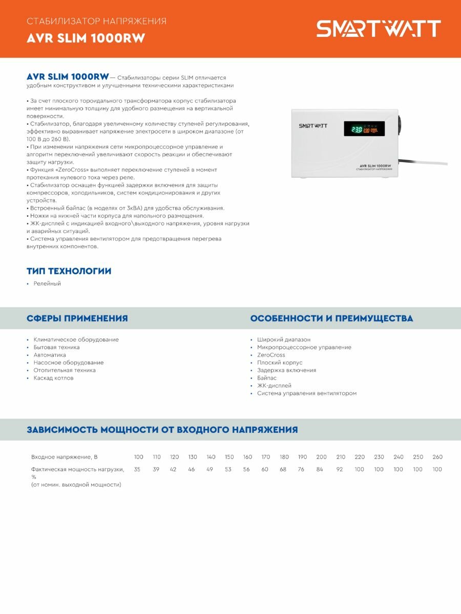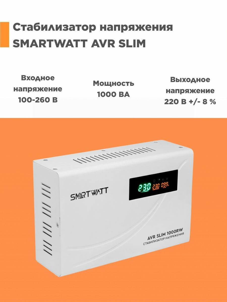 Купить Настенный стабилизатор напряжения SMARTWATT AVR SLIM 1000RW с доставкой по всей России. Настенный стабилизатор напряжения SMARTWATT AVR SLIM 1000RW: сравнение цен, характеристики, фото, актуальное наличие и цены.
