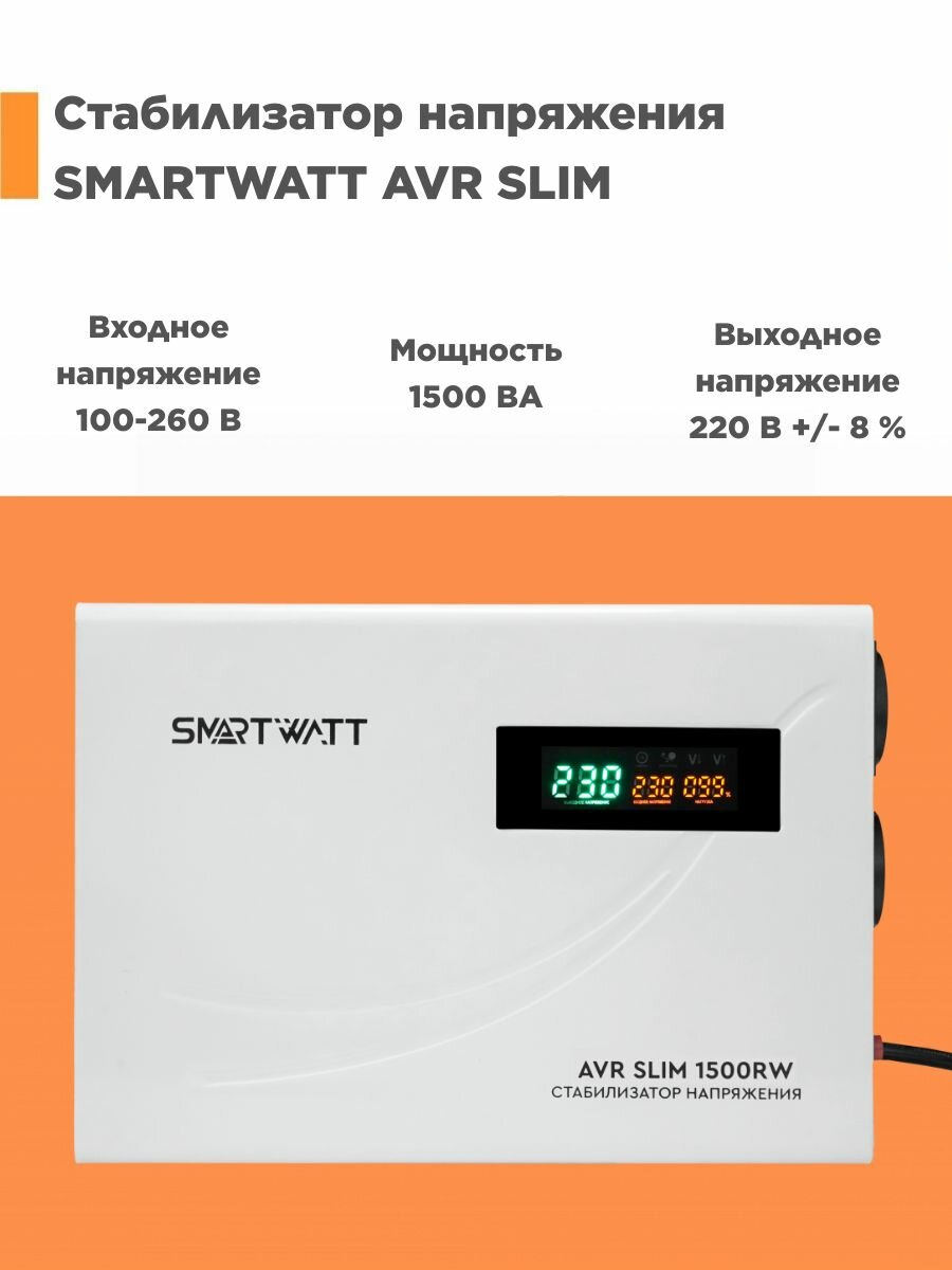 Купить Настенный стабилизатор напряжения SMARTWATT AVR SLIM 1500RW с доставкой по всей России. Настенный стабилизатор напряжения SMARTWATT AVR SLIM 1500RW: сравнение цен, характеристики, фото, актуальное наличие и цены.