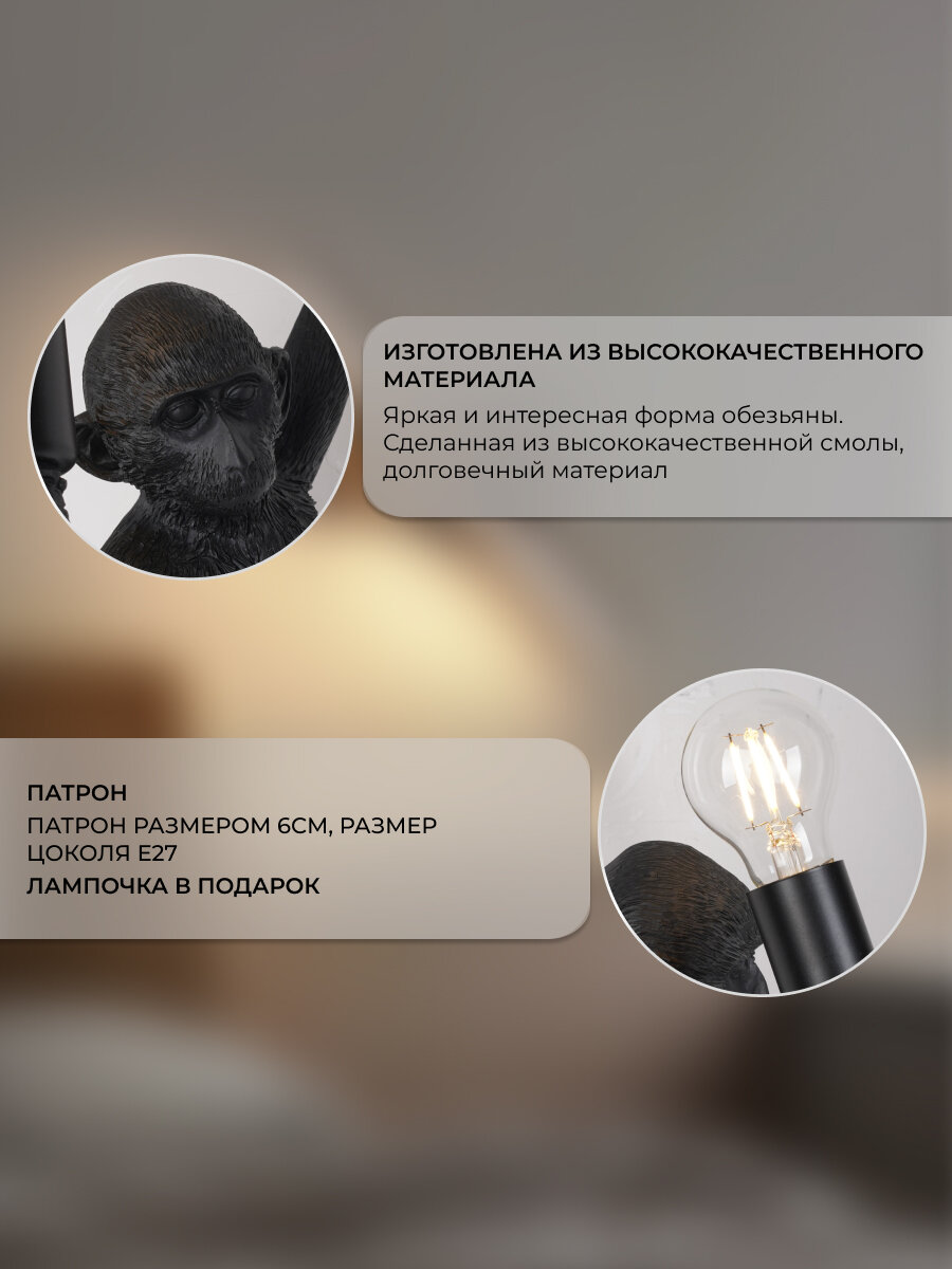 Декоративный светильник, люстра в виде обезьяны, стильный и практичный вариант для украшения Вашей комнаты. Светодиодный светильник обезьяна, от производителя Балтийский Светлячок - это люстра для кухни, люстра в детскую комнату, светильник для ванной комнаты, люстра в спальню, определенно лучший оригинальный декор для комнаты.
